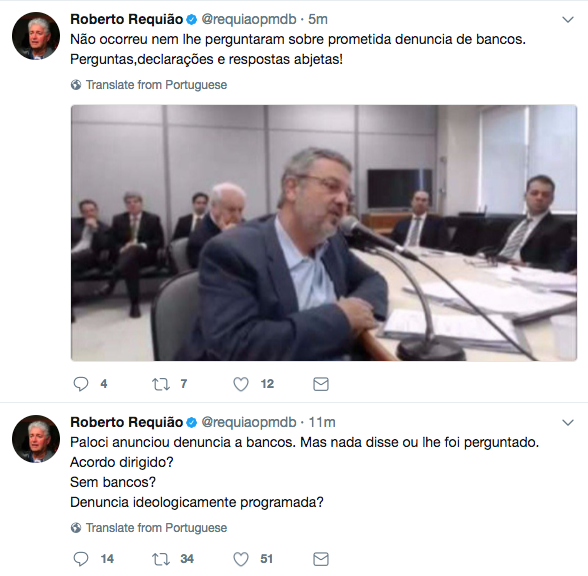 Não perguntaram a Palocci sobre a prometida denúncia de bancos, diz Requião: “acordo dirigido?”