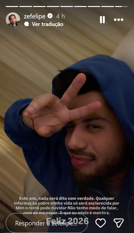 Dias após anunciar o fim do relacionamento com Ana Castela, o cantor Zé Felipe usou as redes sociais para reagir a rumores sobre sua vida pessoal. Na madrugada desta quinta-feira (1), ele publicou uma mensagem nos stories do Instagram afirmando que não aceitará informações falsas a seu respeito.