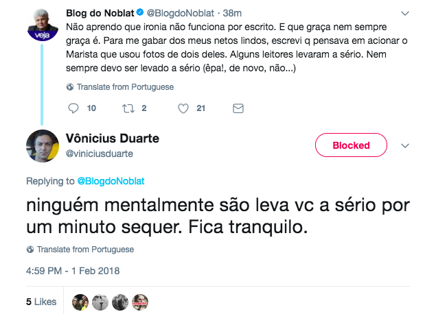 Noblat admite que não deve ser levado a sério (não que alguém normal o fizesse)