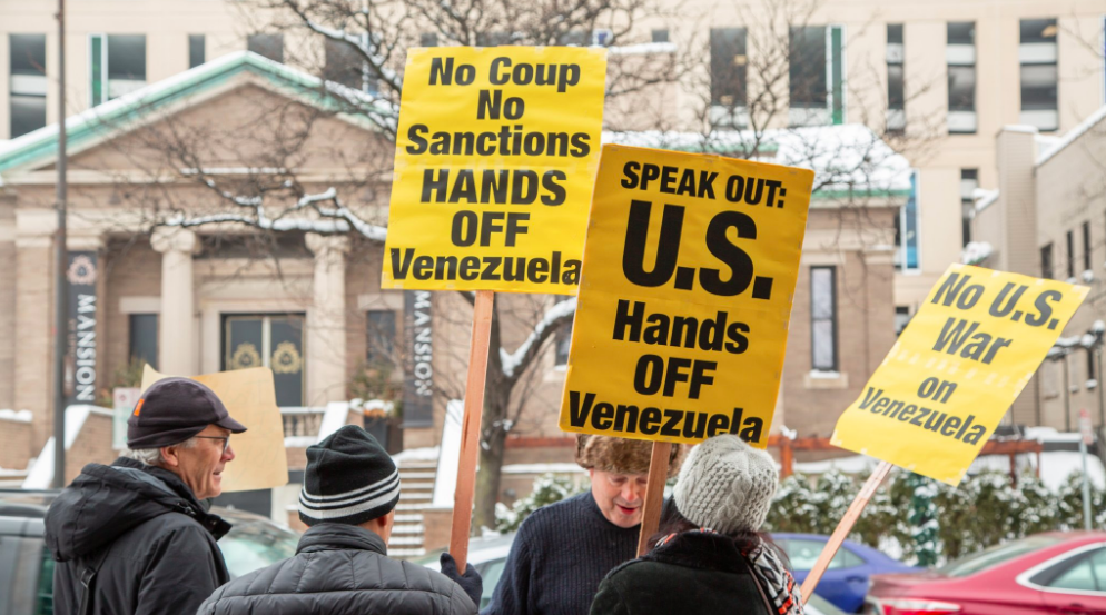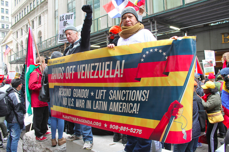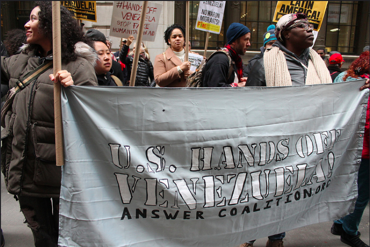 Nos EUA, protestos contra a interferência americana na Venezuela