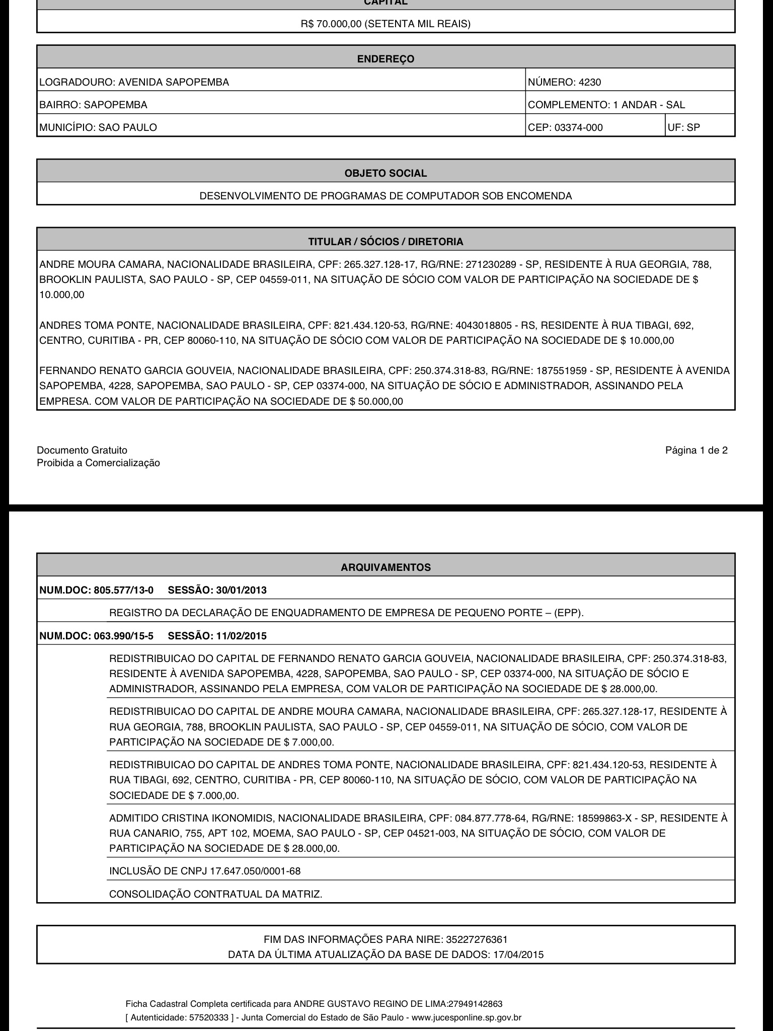 Em fevereiro passado, a Appendix, empresa responsável pelo site Implicante, teve uma mudança na sociedade.