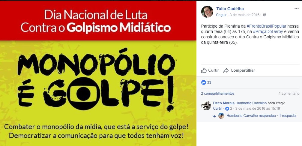 É que se poderia chamar de progressista. Declarou voto em Dilma, chamou a Globo de golpista em 2016, deu palestra na CUT. Os direitistas agora estão cheios de razão para chamar a emissora de comunista.