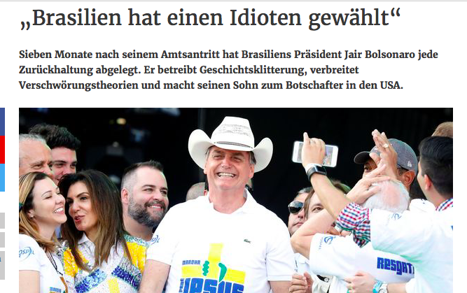 Segundo o jornal Die Presse, um dos maiores e mais antigos da Áustria, fundado em 1848, “o Brasil elegeu um idiota”.