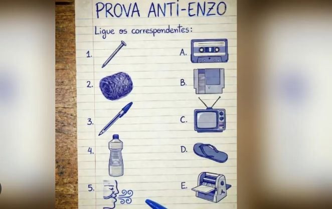 Uma imagem chamada “Prova Anti-Enzo” viralizou nas redes sociais nesta semana ao propor um desafio visual que mistura memória e nostalgia da era analógica. Publicada em 19 de abril de 2026, a proposta chamou atenção por testar o conhecimento de práticas antigas pouco comuns entre gerações mais jovens.