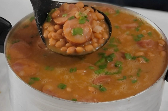 Alguns cozinheiros adicionam uma concha do feijão amassado para engrossar naturalmente. O resultado é um caldo espesso e saboroso, típico das cozinhas populares.