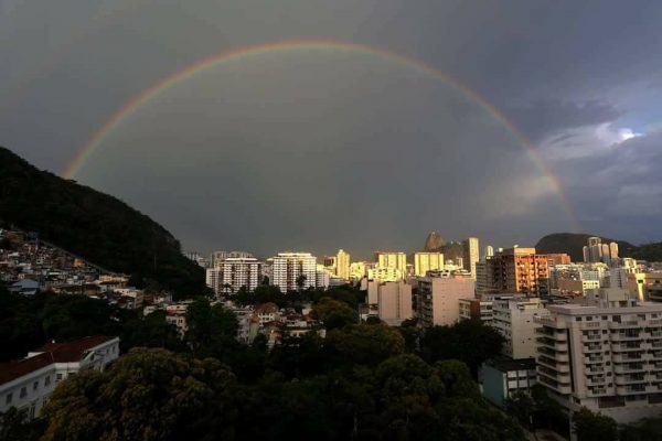 O Rio de Janeiro sempre foi exuberante. Depois da noite da Superlua, desfrutada por todos, hoje surgiu no Céu um arco-íris belíssimo. Esta foto, publicada pelo Bangu News, é uma das muitas imagens postadas na rede. Magníficas. Desfrute. Este arco-iris, o MBL não pode encher o saco para proibir.