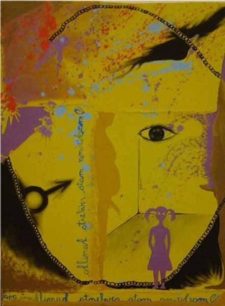 A tela se chama Pedofilia e foi pintada por Alessandra Cunha, artista cuja mostra tinha 31 trabalhos. A obra sugere uma menina cercada por duas figuras masculinas nuas. A exposição era recomendada para maiores de 18 anos, como informava um cartaz.