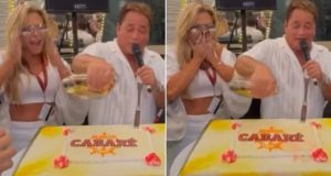 VÍDEO – Cantor bolsonarista despeja cachaça em bolo e deixa esposa sem reação