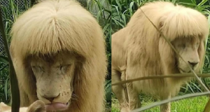Leão branco com “franja” viraliza na China e levanta suspeitas de corte de cabelo