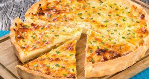 Como fazer torta cremosa de queijo com cebola simples e deliciosa