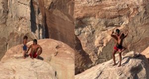 VÍDEO – Influenciador joga filho de 7 anos de penhasco e se explica: “Aprender a voar”