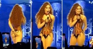 VÍDEO – cantora se assusta com o próprio bumbum em telão de show: “Só uma tanguinha”