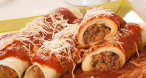 Panquecas de carne moída ao molho vermelho para o almoço de domingo