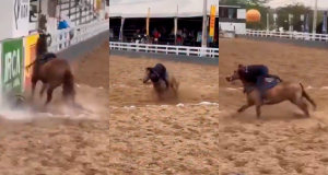 VÍDEO – Vaqueiro cai de cavalo e morre após bater a cabeça em placa de publicidade