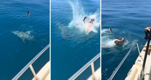 Homem salva pescadora de ataque e pula sobre tubarão em alto-mar