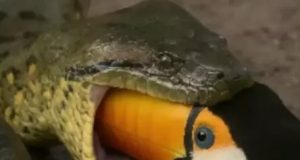 VÍDEO – Sucuri gigante devora tucano pelo bico e impressiona turistas
