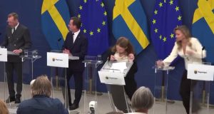 VÍDEO – Ministra da Saúde da Suécia desmaia e cai no chão durante coletiva