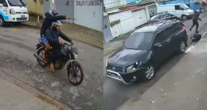 Imagens fortes: Motorista reage a assalto e atropela ladrões em moto duas vezes