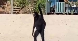 VÍDEO: macaco-aranha é filmado passeando na praia e interagindo com turistas