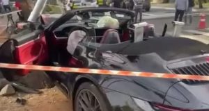 IMAGENS FORTES: Bia Miranda e Gato Preto sofrem acidente com Porsche de R$ 1,5 milhão