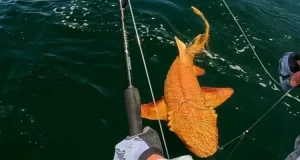Pescadores encontram tubarão laranja com mutações raras