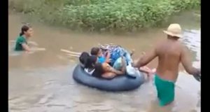 Crianças atravessam rio em boia para irem a escola no interior do Piauí