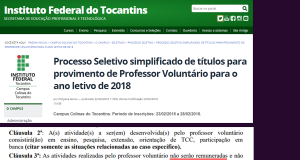 Faculdade federal no TO abre processo seletivo para contratação de professor universitário sem remuneração