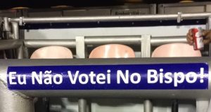 Sambódromo amanhece com adesivos: ‘Eu não votei no bispo’