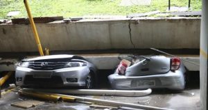 Teto de garagem de prédio desaba e destrói 25 carros em Brasília
