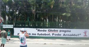 No Palmeiras contra Santos, manifestantes colocam faixa no estádio falando de “propina” da Globo