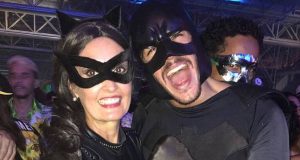 Fátima Bernardes e Túlio Gadêlha como Mulher-Gato e Batman