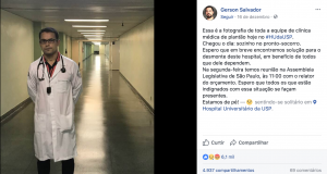Médico posta foto de “toda a equipe” de plantão no Hospital da USP e viraliza
