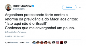 Argentinos protestam contra a reforma da Previdência deles aos gritos de “isto aqui não é o Brasil”