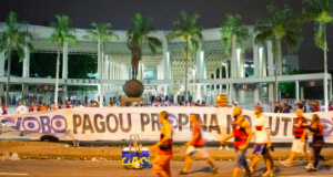 Manifestantes levam faixa ao Maracanã: Globo paga propina