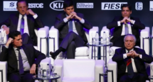 “Vou ficar devendo uma resposta”, diz Moro ao ser questionado sobre defender a Lava Jato em festa da Istoé lotada de corruptos