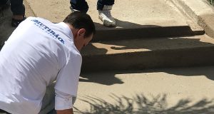 Doria faz rabisco em calçada recém-reformada por ação da prefeitura