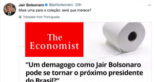 Bolsonaro cumpre promessa de usar a Economist “em emergência no banheiro”, mas esquece de retirar os grampos