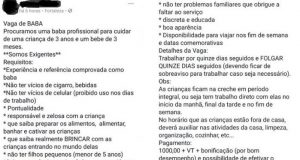 Mulher busca ‘babá magra para caber no carro’, em anúncio de emprego
