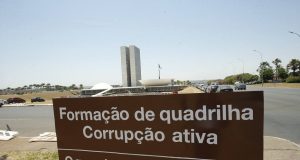 Placa em frente à Câmara dos Deputados é alterada para ‘formação de quadrilha’