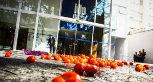 Grupo faz ‘tomataço’ em frente a evento com Gilmar Mendes em SP