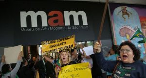 Manifestantes protestam em frente ao MAM contra performance com homem nu