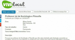 Viraliza anúncio de colégio de BH procurando professor que “não seja orientado pela ideologia comunista”