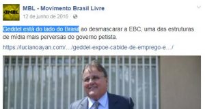 Post do MBL dizendo que “Geddel está do lado do Brasil” viraliza
