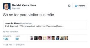 Em 2015, Geddel disse que só iria para a cadeia se fosse para visitar a mãe de José de Abreu