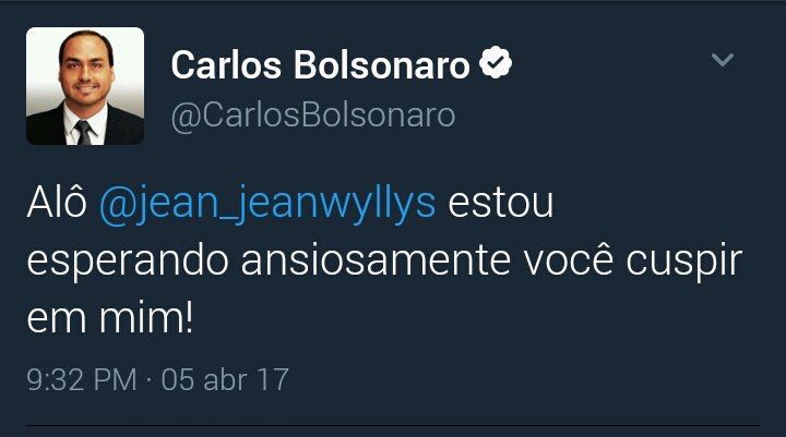 Filho de Bolsonaro não disfarça e pede para Jean Wyllys cuspir nele