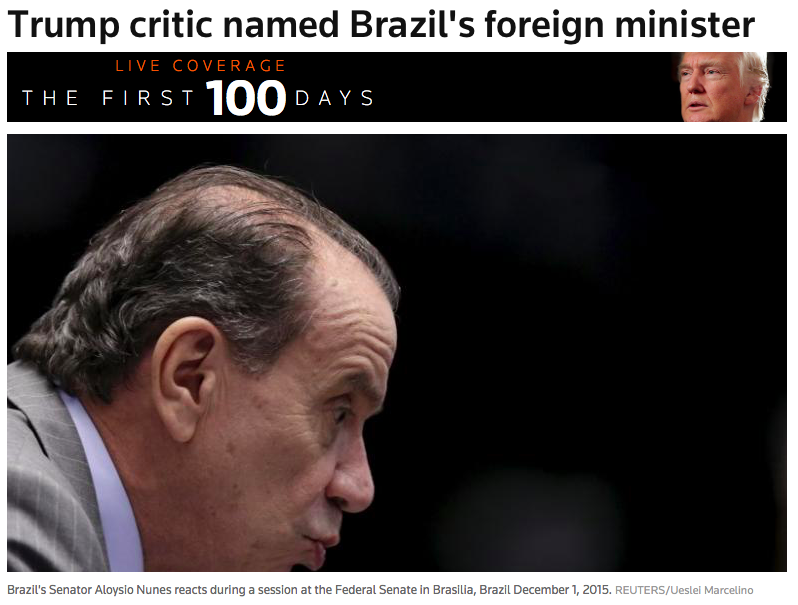 Nos EUA, Reuters chama Aloysio de “crítico contundente” de Trump e “guerrilheiro esquerdista”