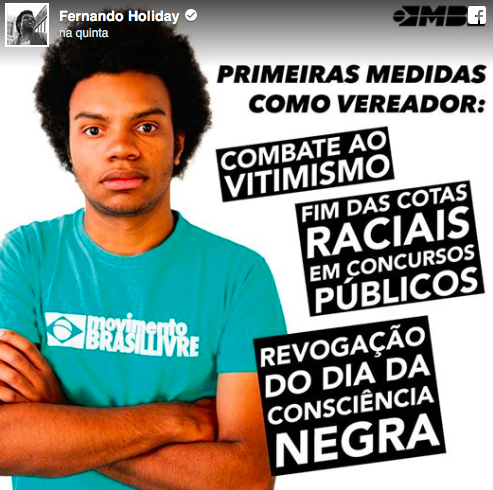 Vereador Fernando Holiday quer acabar com cotas raciais e revogar Dia da Consciência Negra