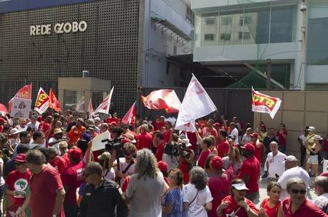 Manifestantes protestam em frente à sede da Rede Globo no Rio