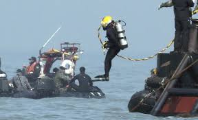 Mergulhador se emociona ao resgatar dois corpos atados a um só colete na Coreia do Sul