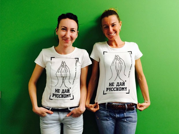 Brasileira na Ucrânia cria camiseta de protesto com os dizeres: ‘Não dê para os russos’